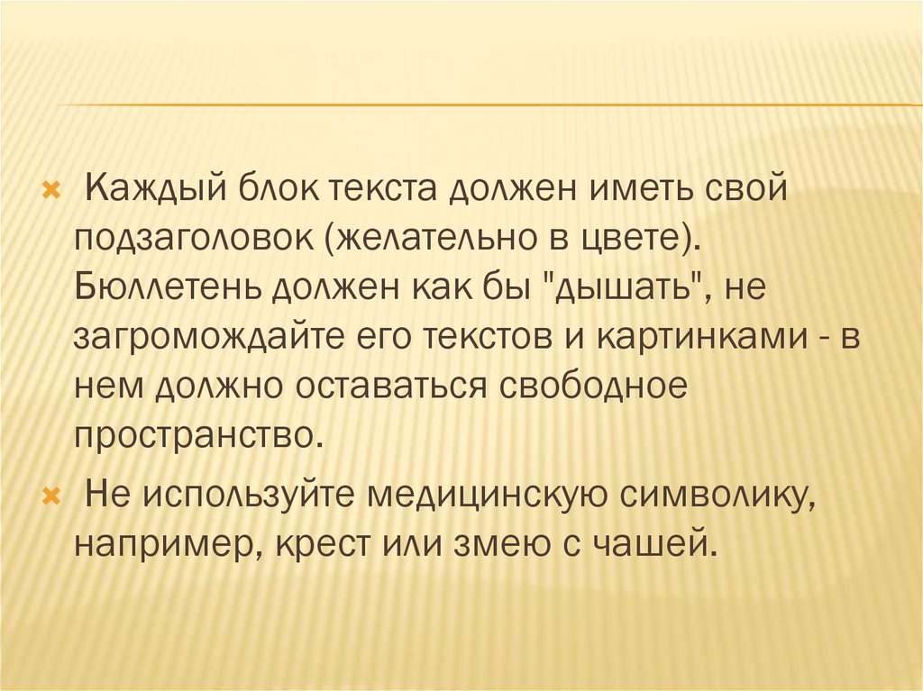 в цвете). Бюллетень должен как бы "дышать", не загромождайте