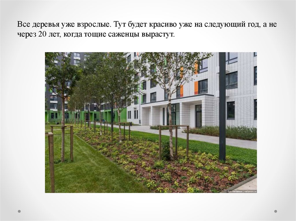 Все деревья уже взрослые. Тут будет красиво уже на следующий год, а нечерез 20 лет, когда тощие саженцы вырастут.