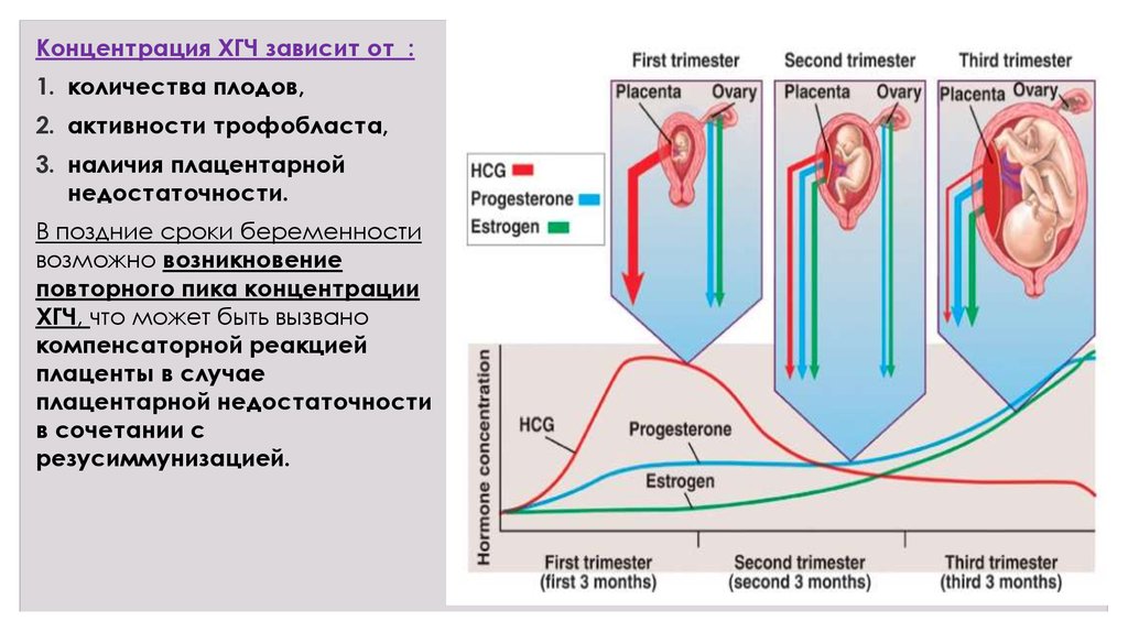 Концентрация ХГЧ зависит от :1. количества плодов,