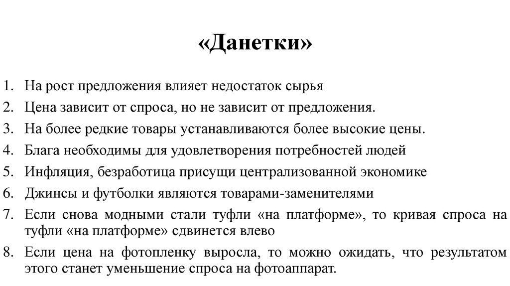 На рост предложения влияет недостаток сырьяЦена зависит от спроса, но не зависит от предложения.