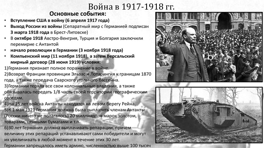 Война в 1917-1918 гг.Основные события: