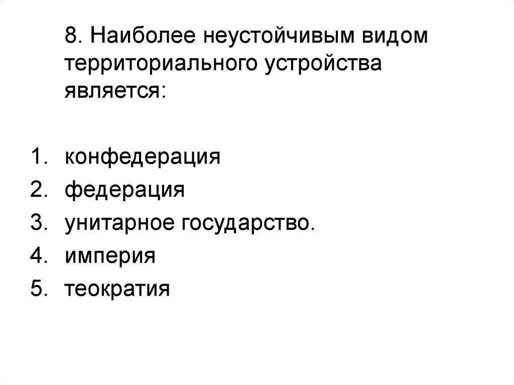 8. Наиболее неустойчивым видомтерриториального устройства