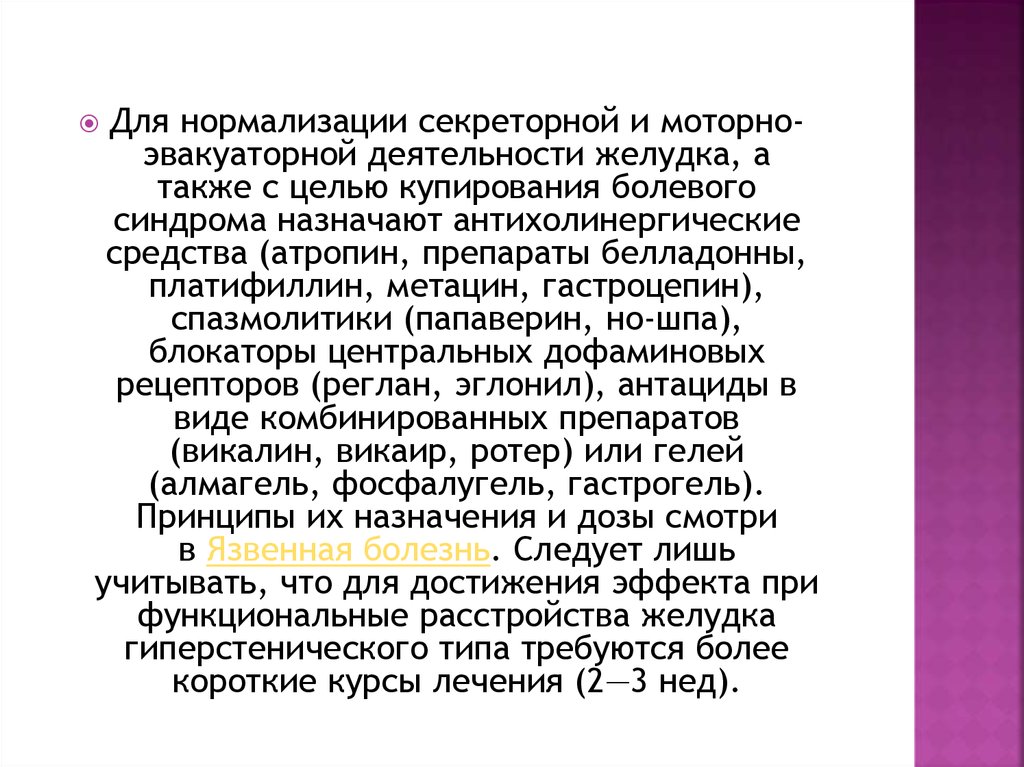 Для нормализации секреторной и моторноэвакуаторной деятельности желудка, атакже с целью купирования болевого
