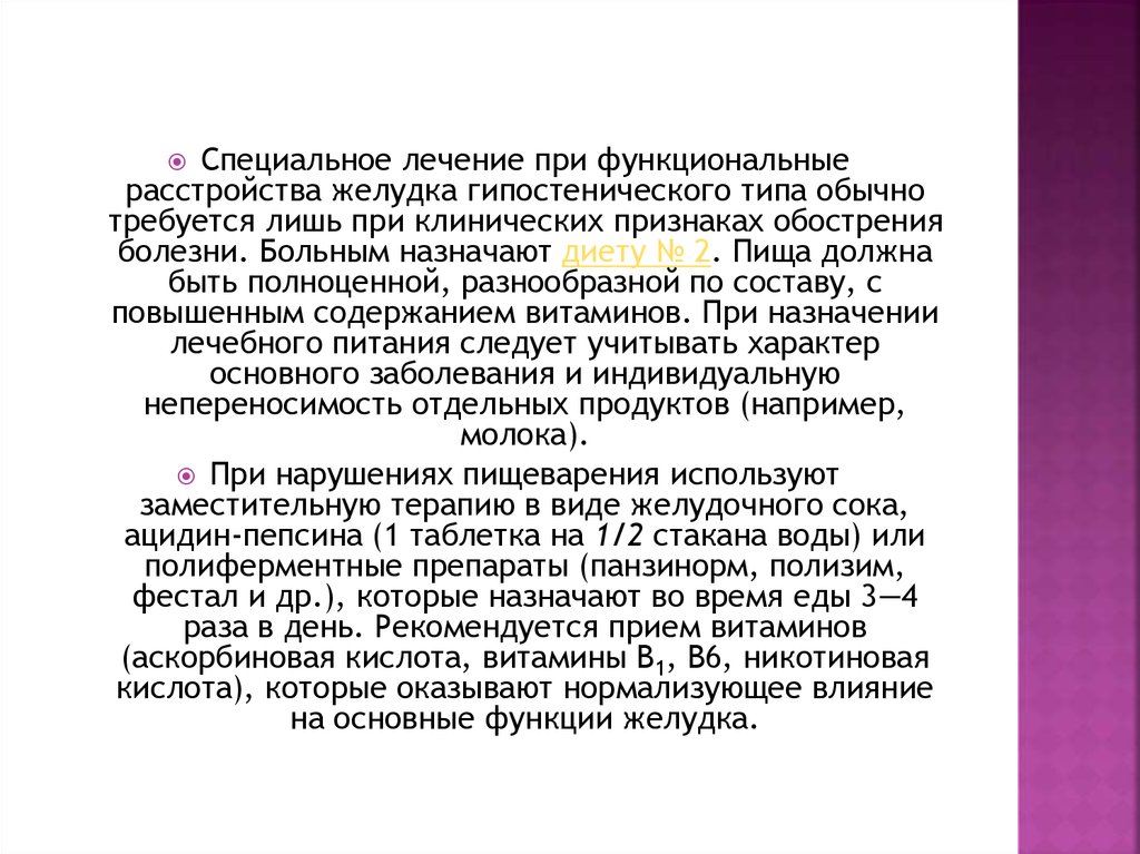 Специальное лечение при функциональныерасстройства желудка гипостенического типа обычно