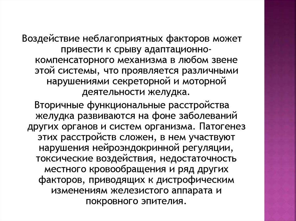 Воздействие неблагоприятных факторов можетпривести к срыву адаптационнокомпенсаторного механизма в любом звене