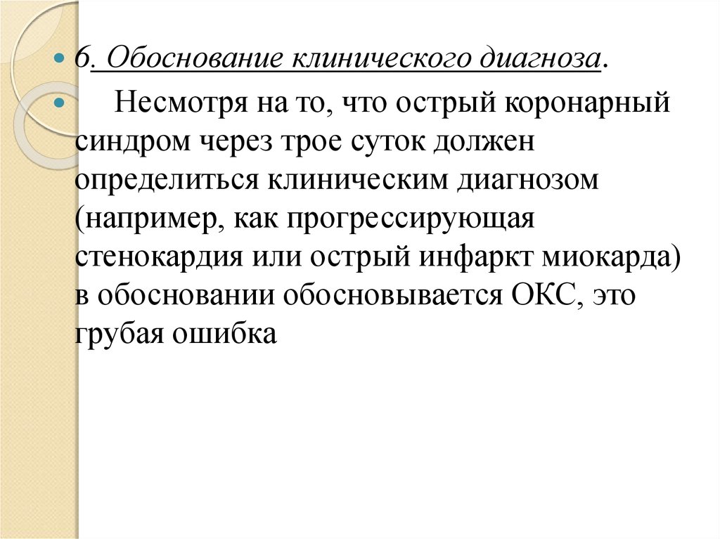 6. Обоснование клинического диагноза.Несмотря на то, что острый коронарный