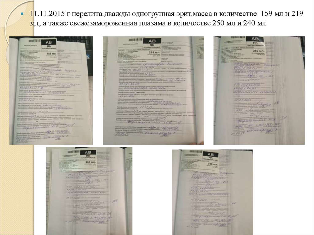 ОАК от 11.11.15г. НВ-99 г/л, лейк-11,8*10⁹ г/л, эрит3,22 *10¹² г/л, тромб 270*10⁹ г/л.