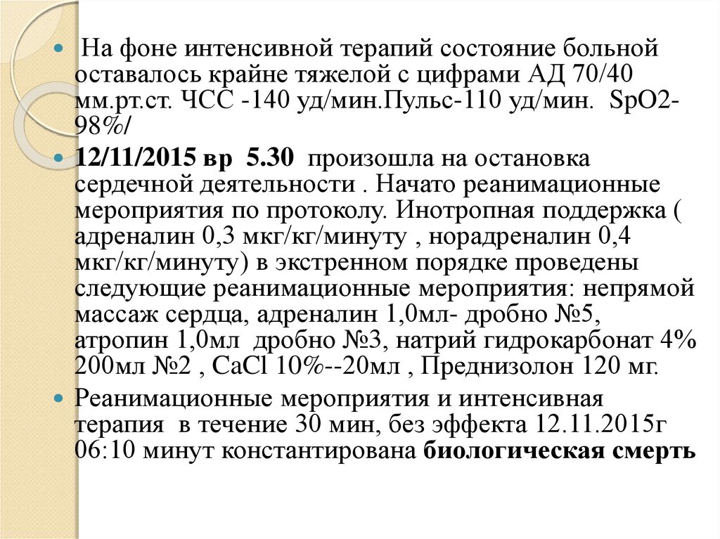 Причина смерти: Острая сердечная сосудистая недостаточность