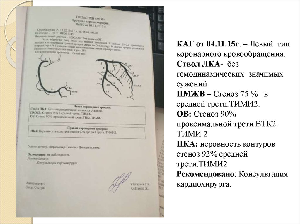 КАГ от 04.11.15г. – Левый типкоронарного кровообращения.