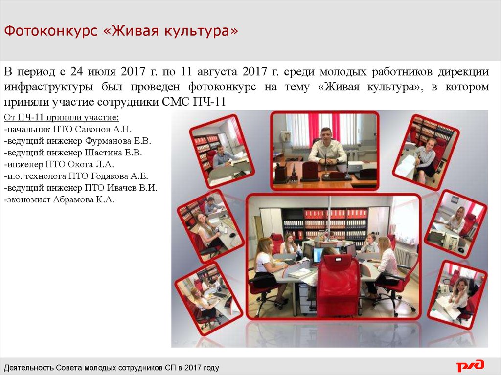 Фотоконкурс «Живая культура»В период с 24 июля 2017 г. по 11 августа 2017 г. среди молодых работников дирекции