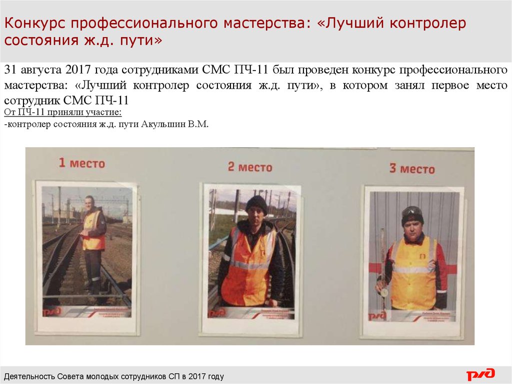 мастерства: «Лучший контролер состояния ж.д. пути», в котором занял первое место