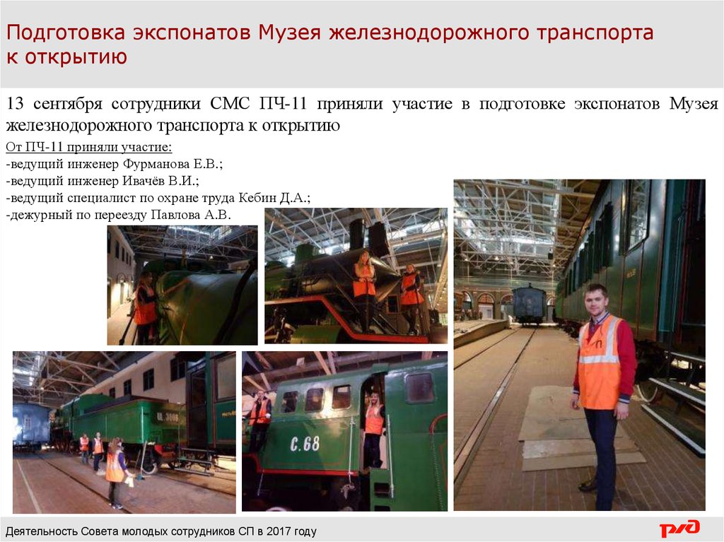 Подготовка экспонатов Музея железнодорожного транспортак открытию