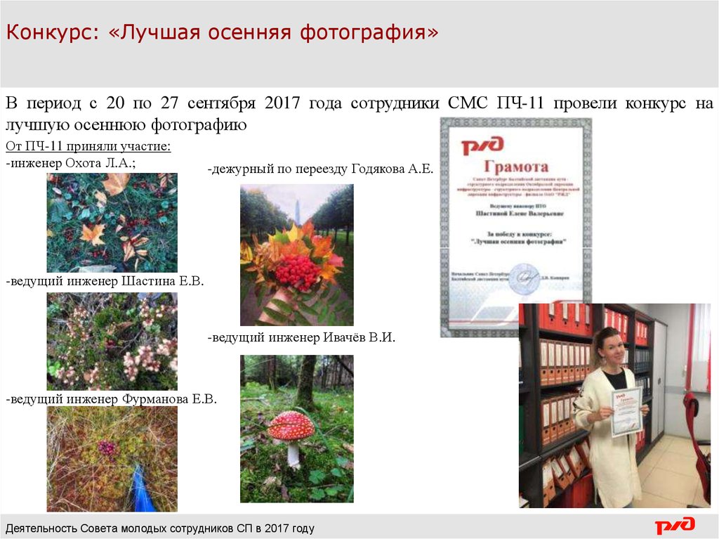 Конкурс: «Лучшая осенняя фотография»В период с 20 по 27 сентября 2017 года сотрудники СМС ПЧ-11 провели конкурс на