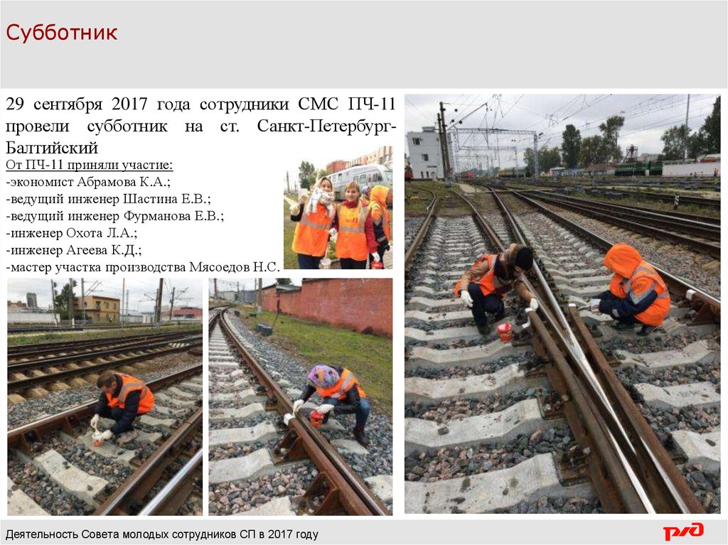 Субботник27 июня на станции Санкт-Петербург-Балтийский сотрудниками СМС ПЧ-11 был проведен