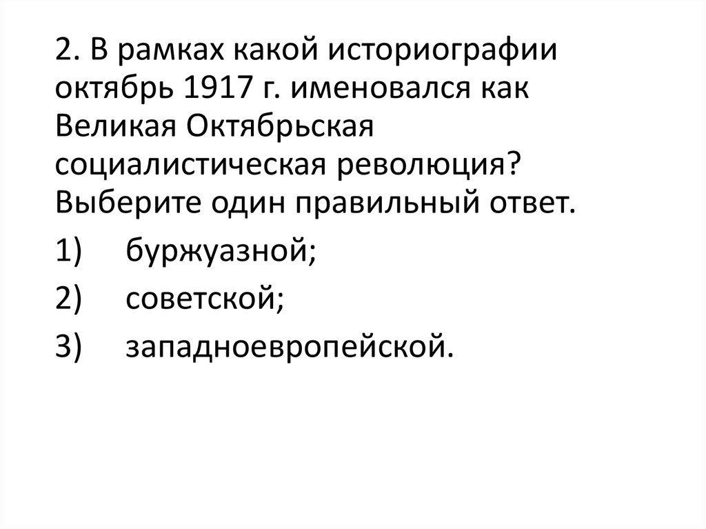 2. В рамках какой историографииоктябрь 1917 г. именовался как