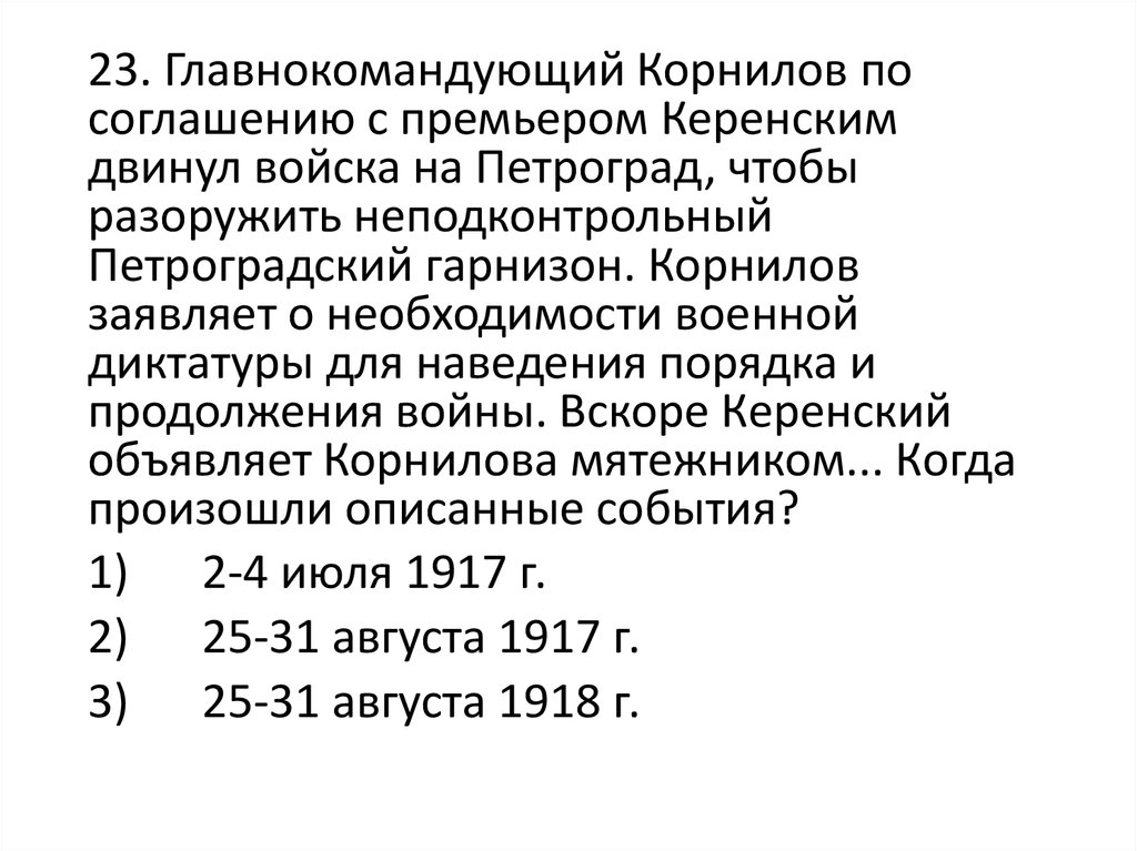 23. Главнокомандующий Корнилов посоглашению с премьером Керенским