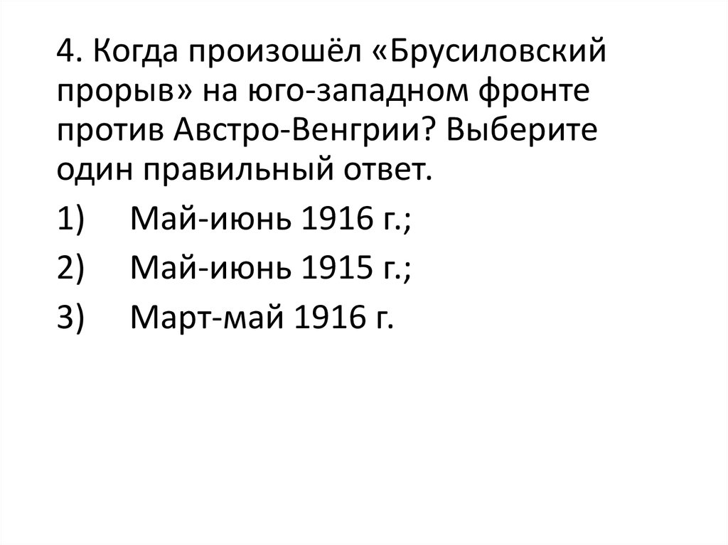 4. Когда произошёл «Брусиловскийпрорыв» на юго-западном фронте