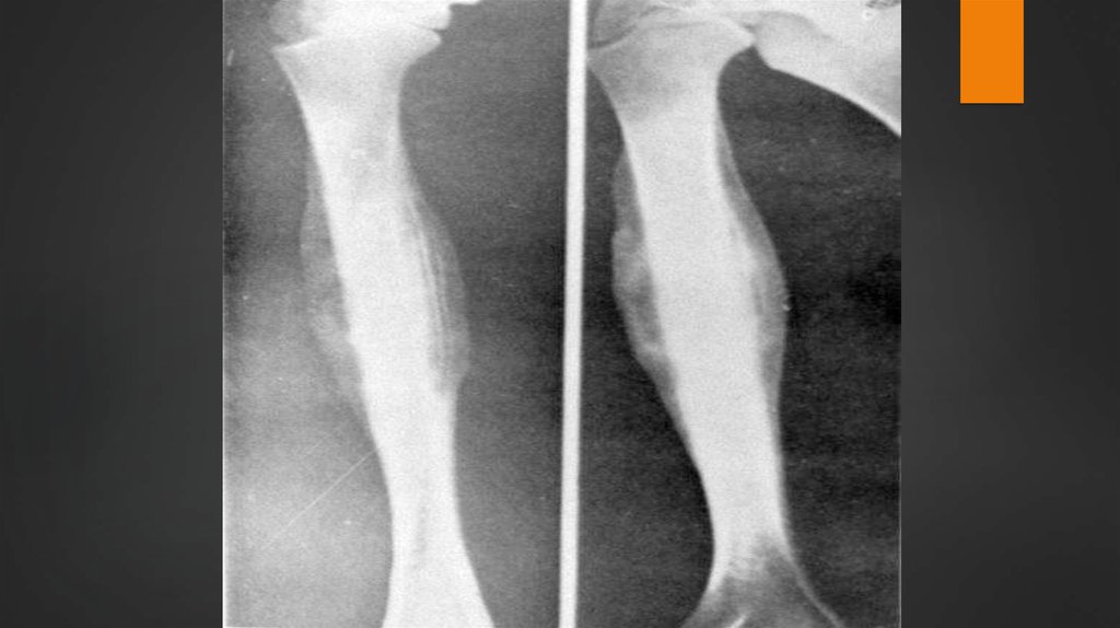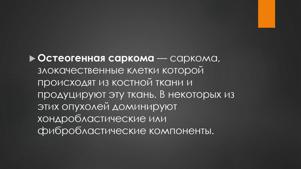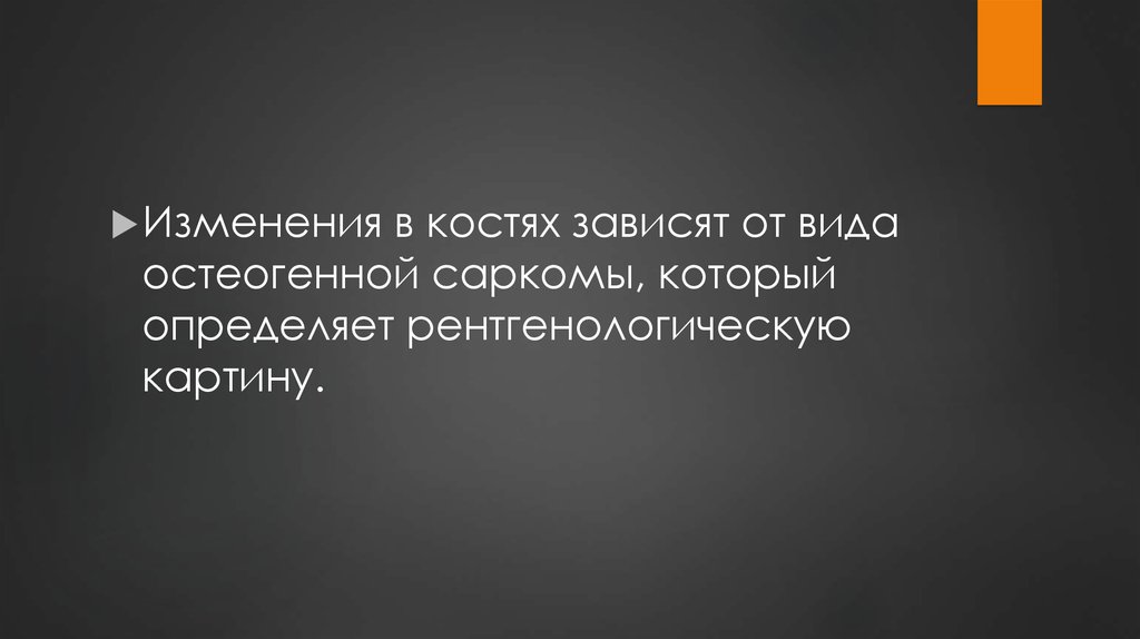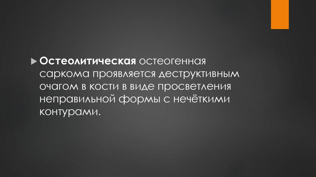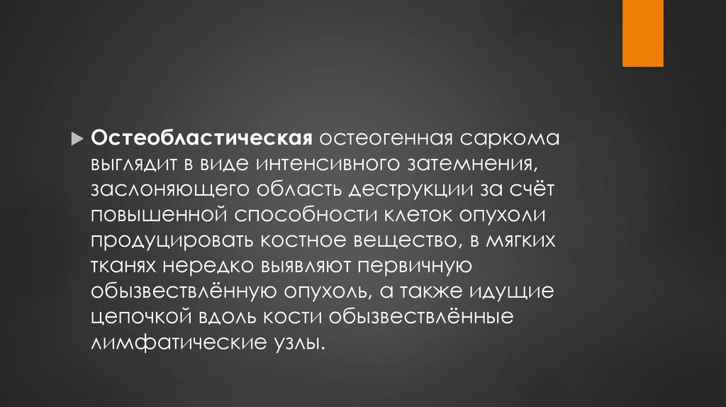 Остеобластическая остеогенная саркомавыглядит в виде интенсивного затемнения,