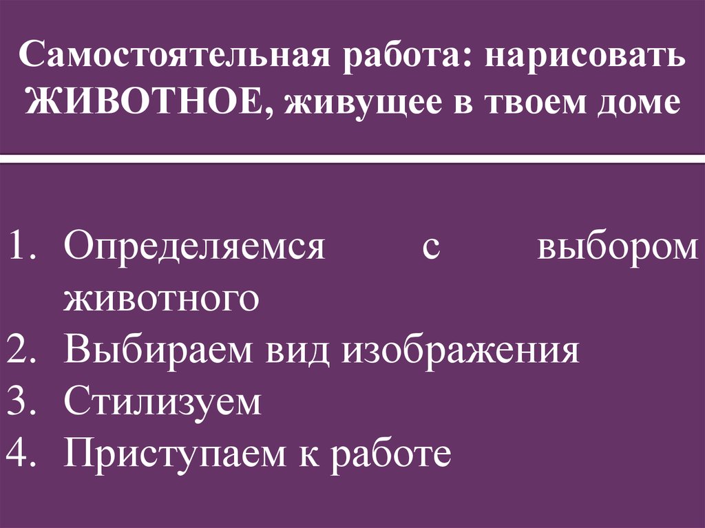 Самостоятельная работа: нарисоватьЖИВОТНОЕ, живущее в твоем доме