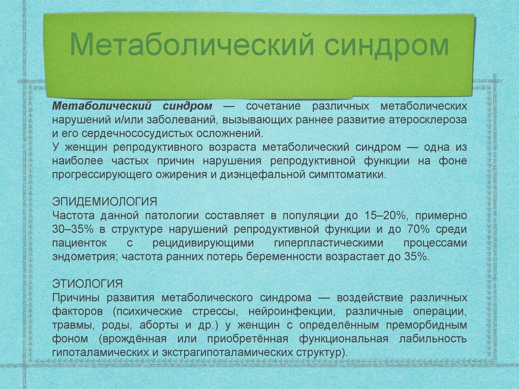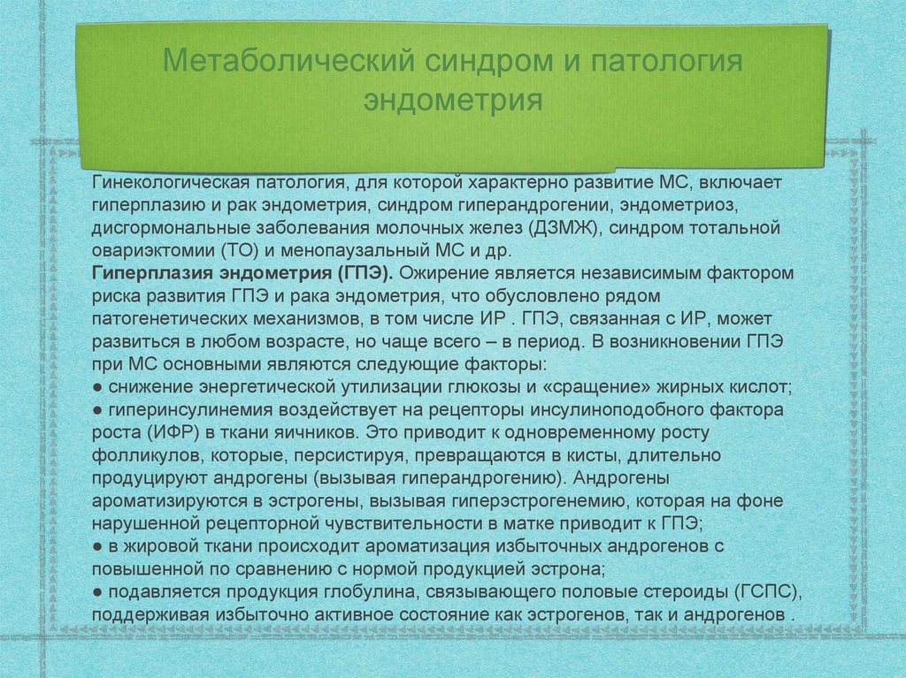 Метаболический синдром и патологияэндометрия