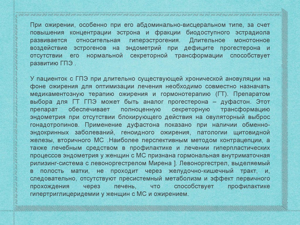 риска развития ГПЭ и рака эндометрия, что обусловлено рядом