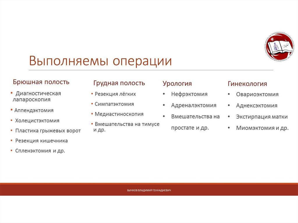 Эндовидеохирургия. Выполняемые операции