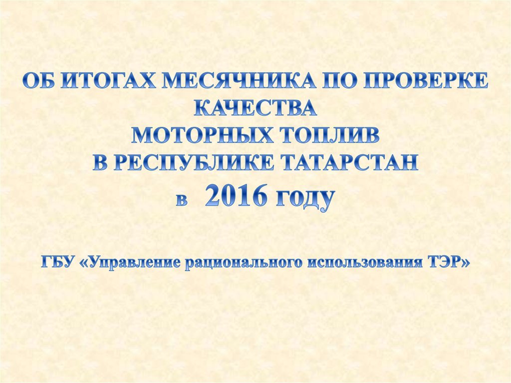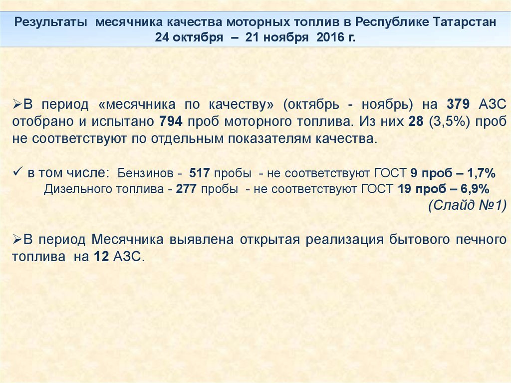 Результаты месячника качества моторных топлив в Республике Татарстан24 октября – 21 ноября 2016 г.
