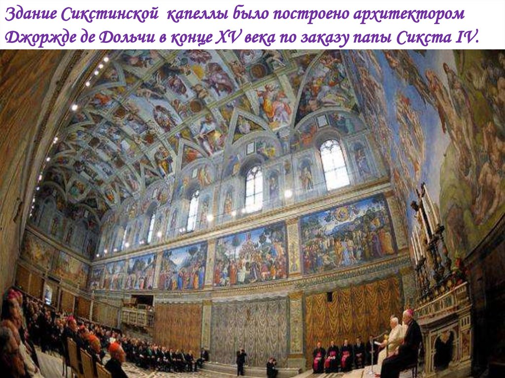 Здание Сикстинской капеллы было построено архитекторомДжоржде де Дольчи в конце XV века по заказу папы Сикста IV.