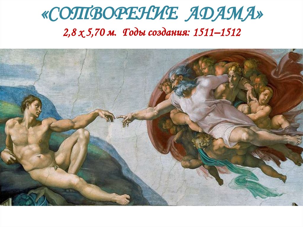 «СОТВОРЕНИЕ АДАМА»2,8 х 5,70 м. Годы создания: 1511–1512