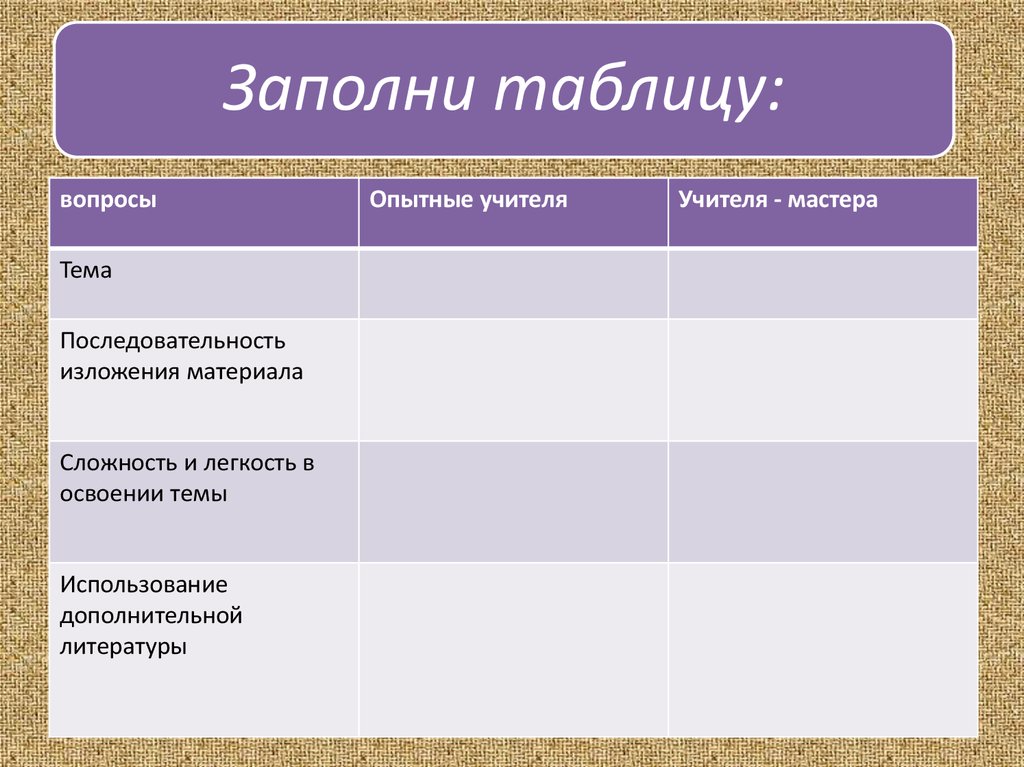 Заполни таблицу:вопросы