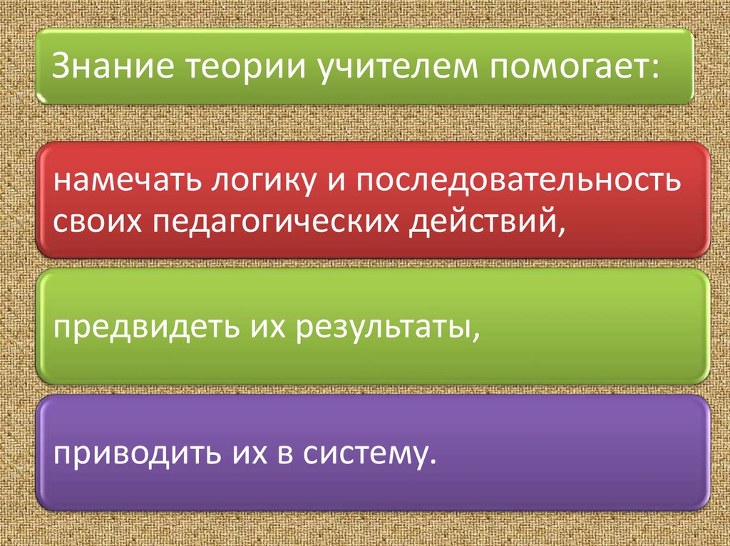 Знание теории учителем помогает:намечать логику и последовательность