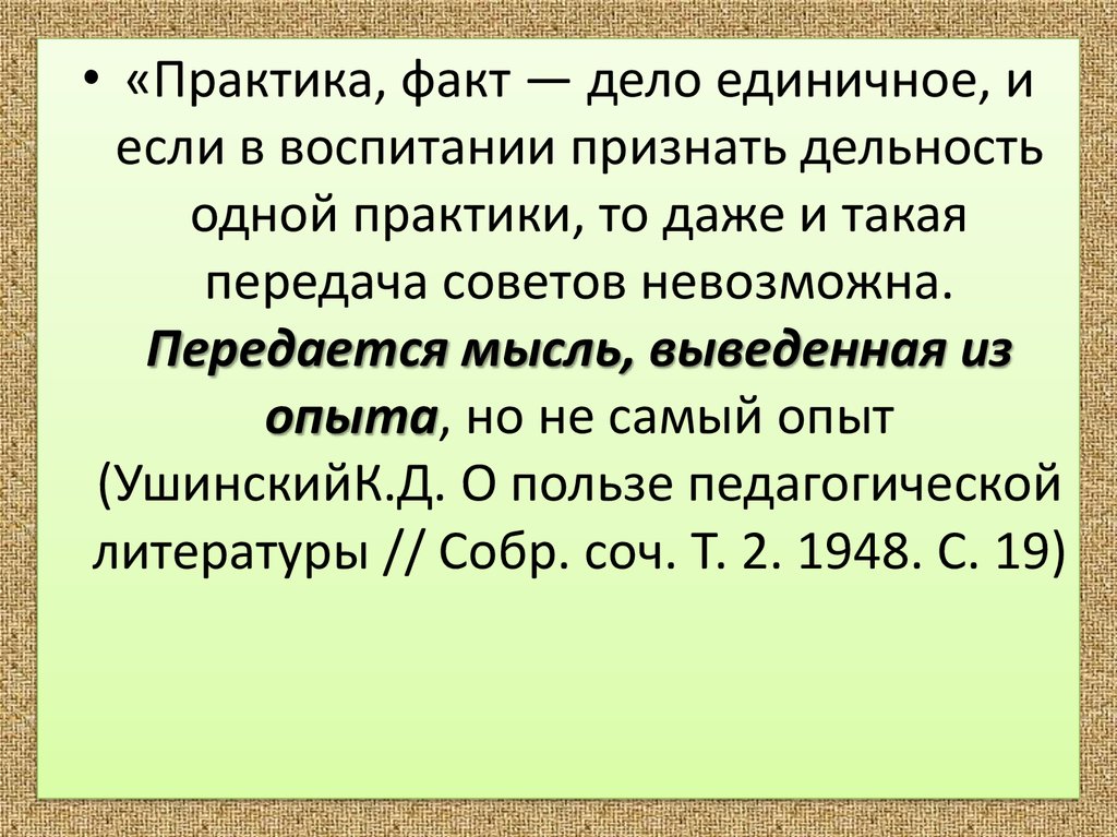 • «Практика, факт — дело единичное, иесли в воспитании признать дельность