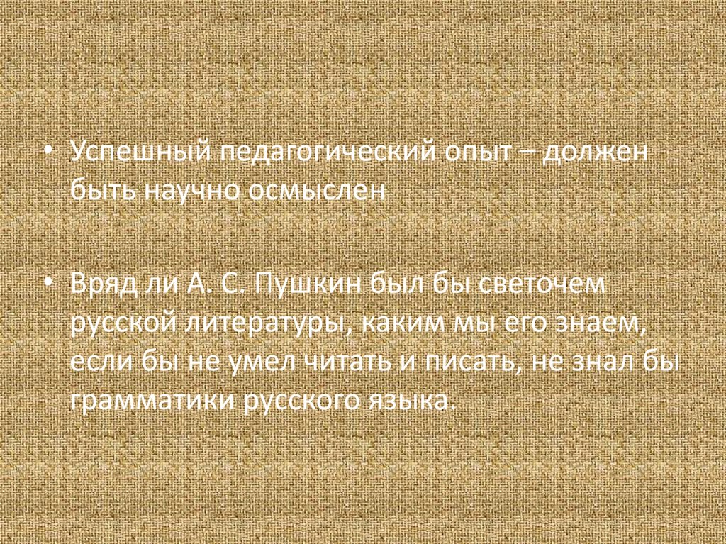 • Успешный педагогический опыт – долженбыть научно осмыслен