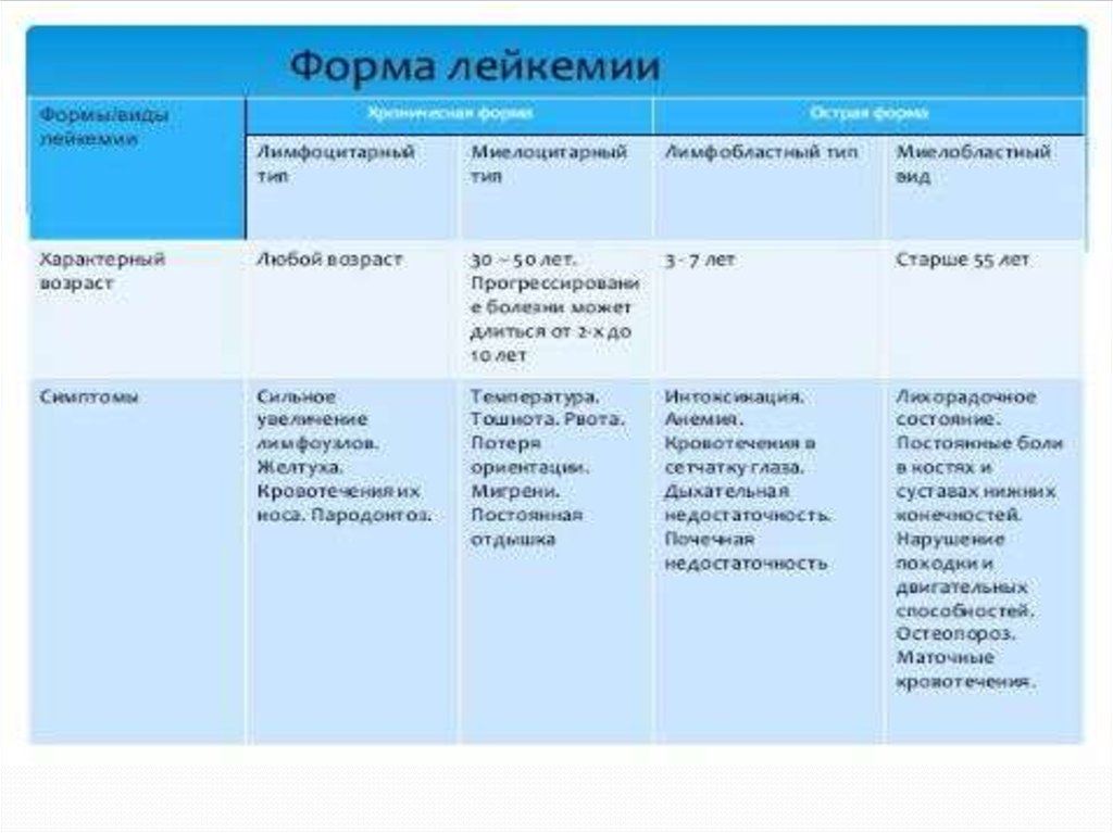 Лейкемия. Типы лейкемий