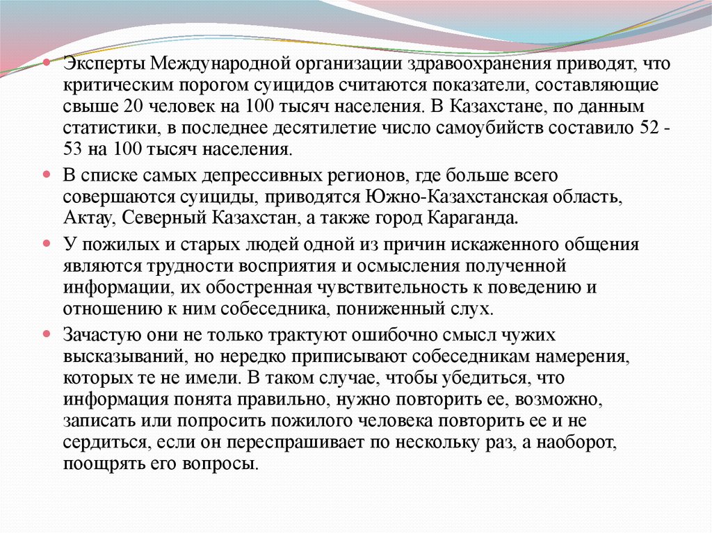 Эксперты Международной организации здравоохранения приводят, чтокритическим порогом суицидов считаются показатели, составляющие