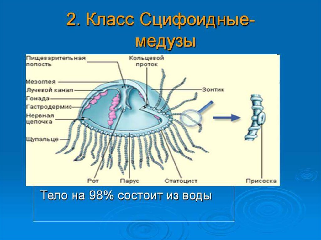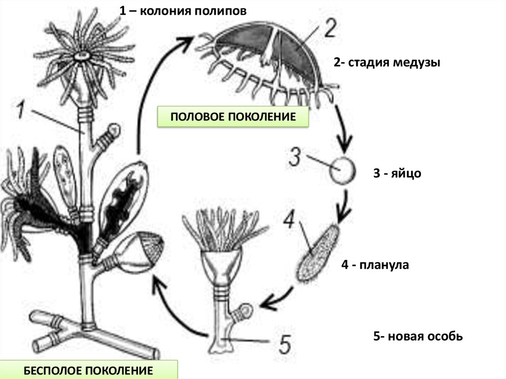 1 – колония полипов2- стадия медузы