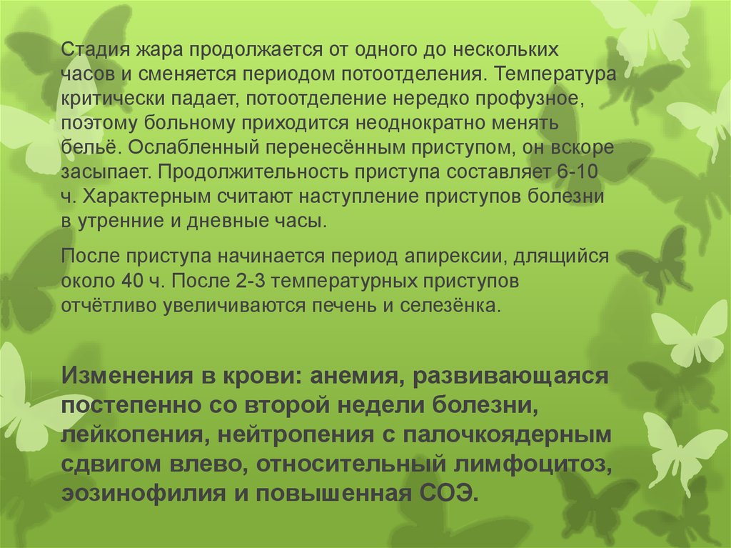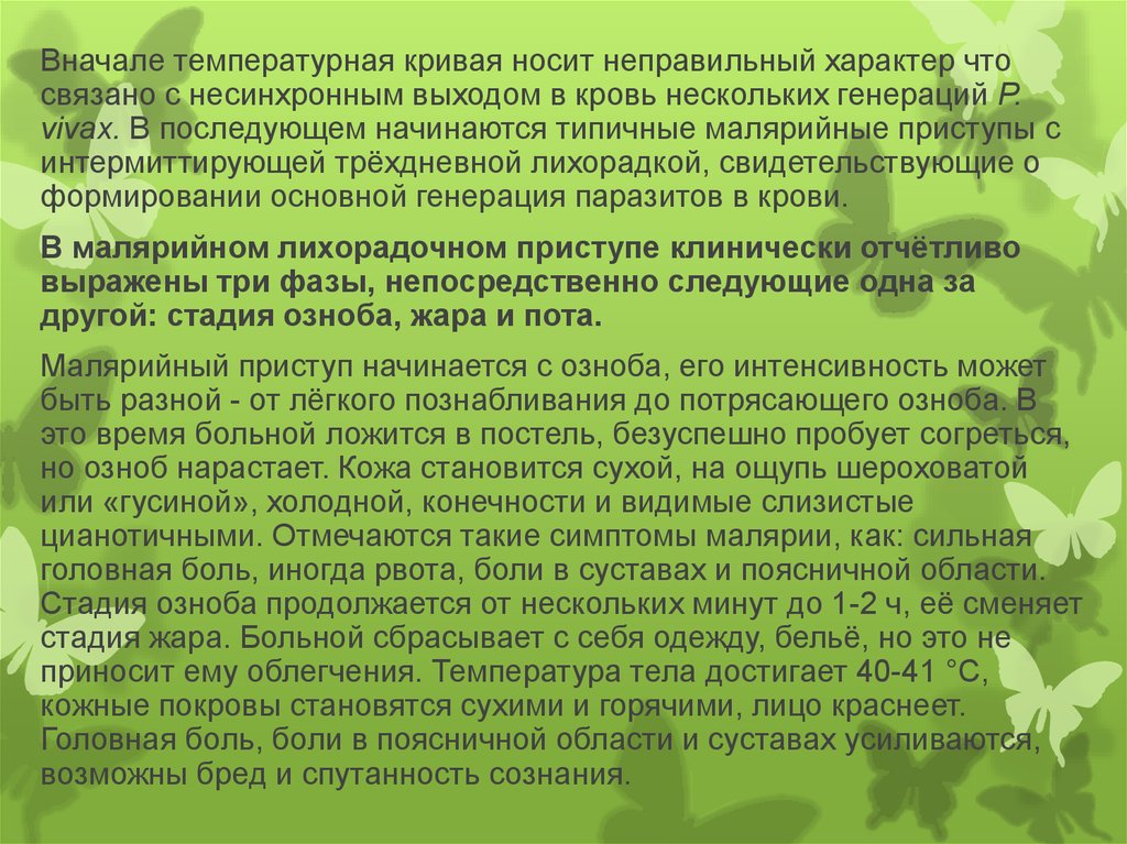 интермиттирующей трёхдневной лихорадкой, свидетельствующие о