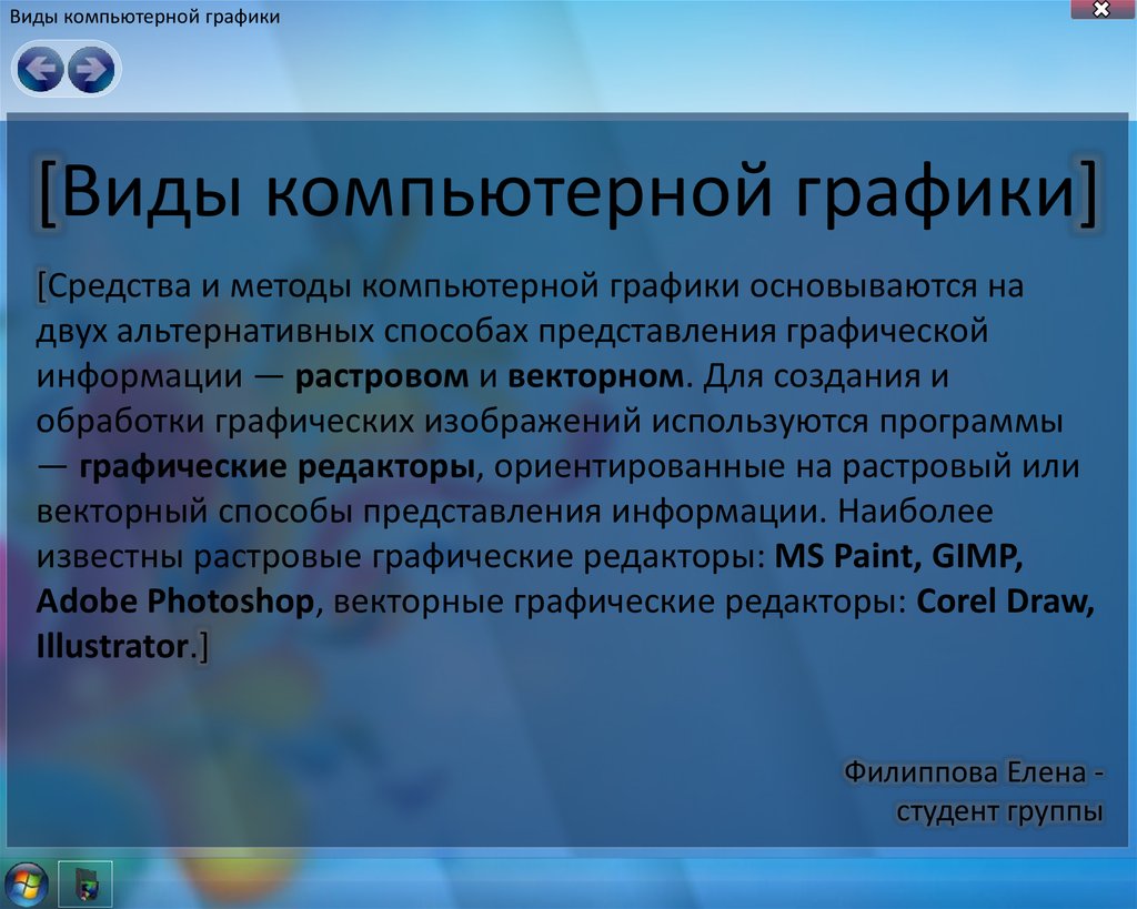 Заголовок презентации. Подготовка к показу презентации (Виды компьютерной графики)