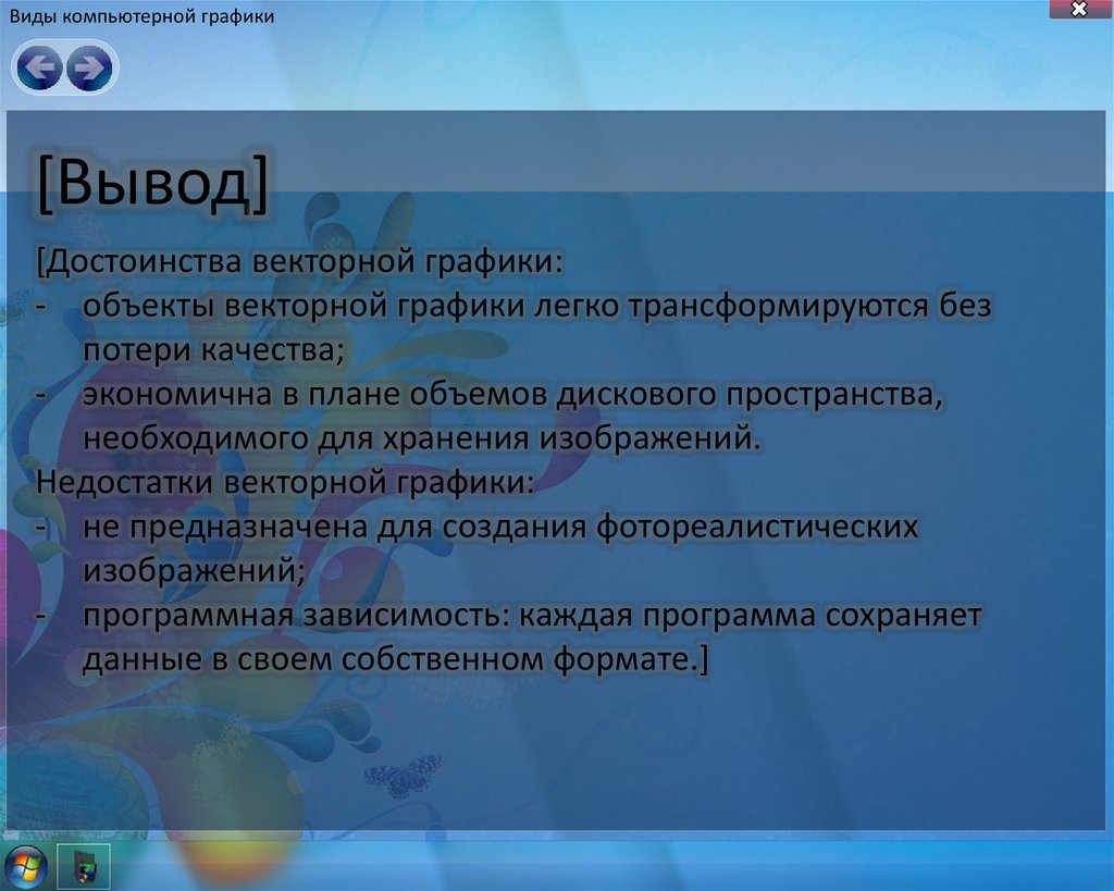 очередь с особенностями данного вида компьютерной графики. При векторном