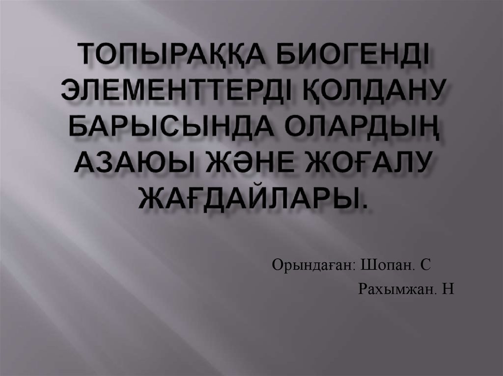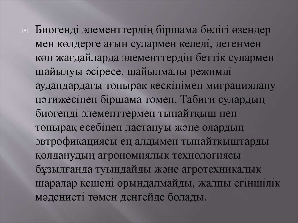 1. Топыраққа биогенді элементтерді қолдану барысында олардың азаюы және жоғалу жағдайлары.
