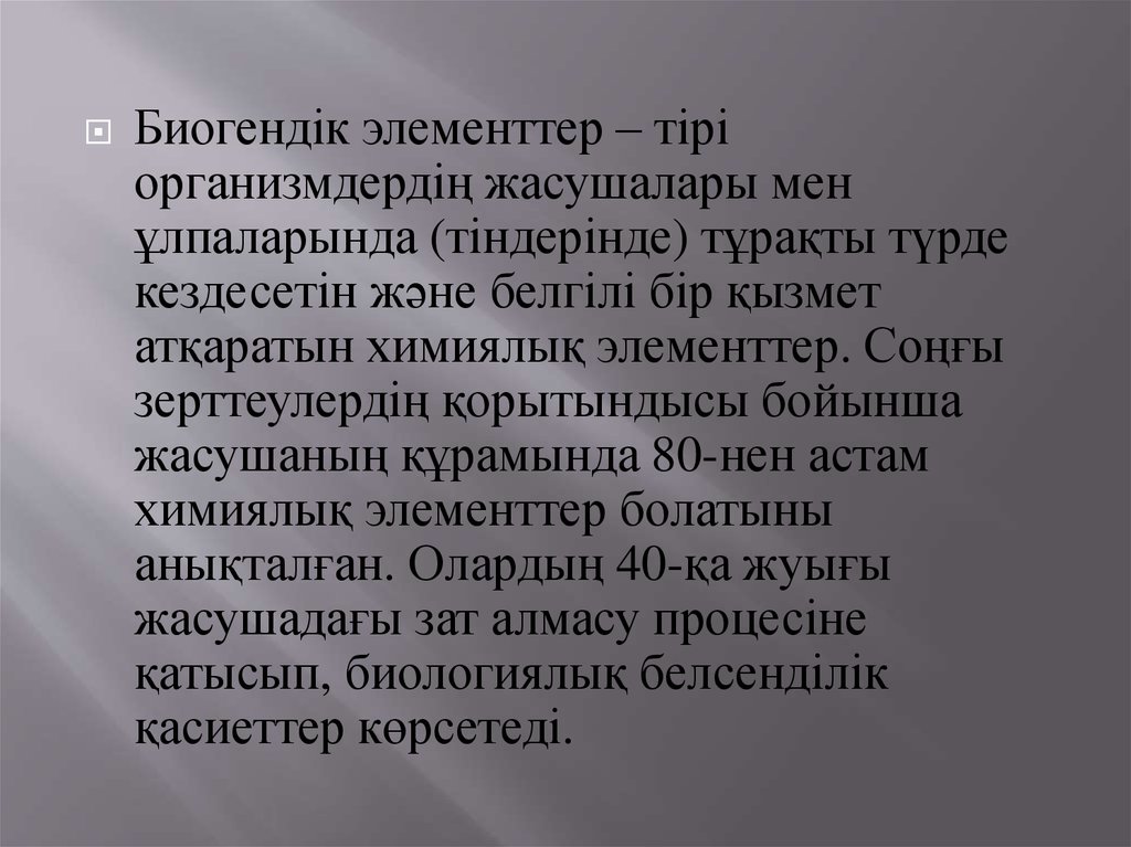 Биогендік элементтер – тіріорганизмдердің жасушалары мен