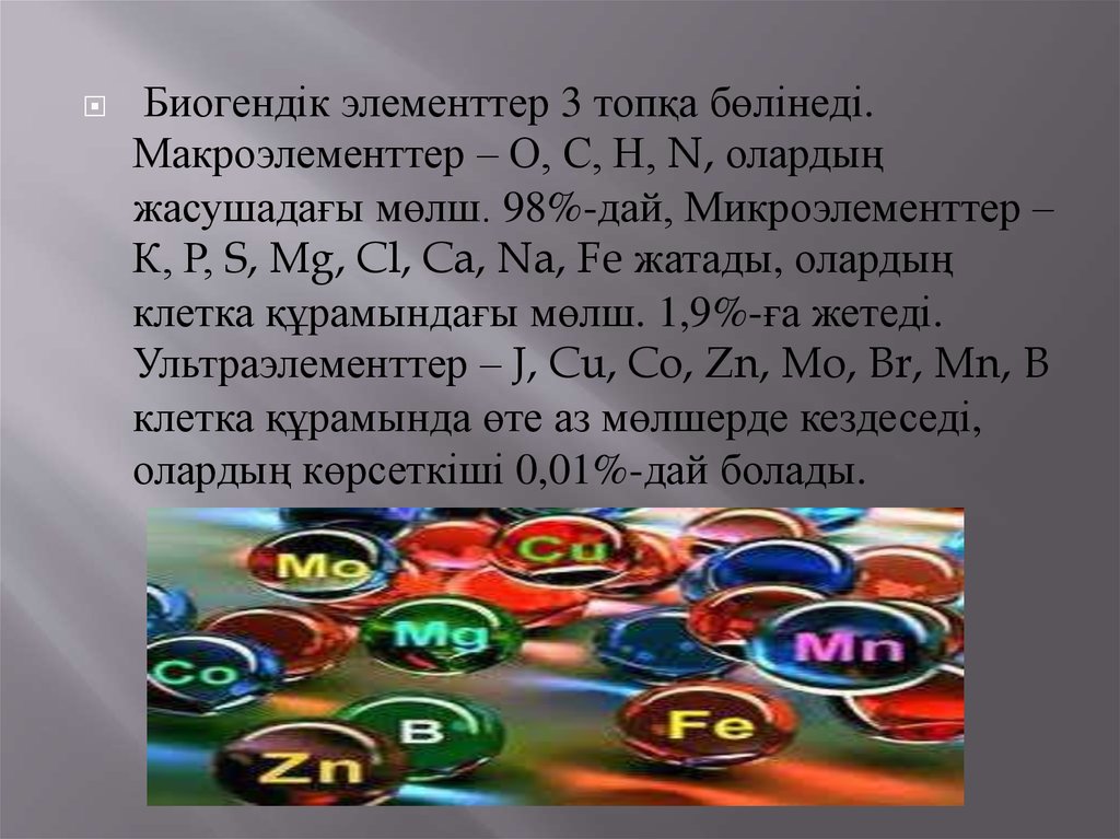 жасушадағы мөлш. 98%-дай, Микроэлементтер –
