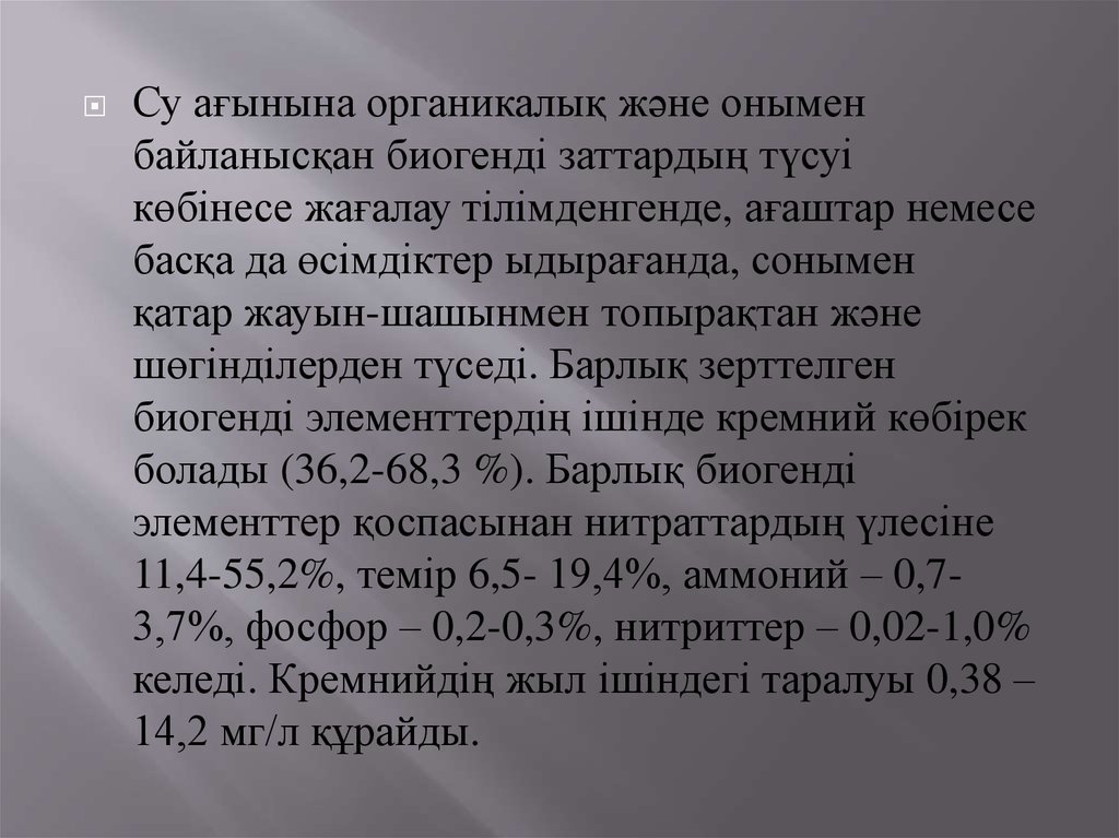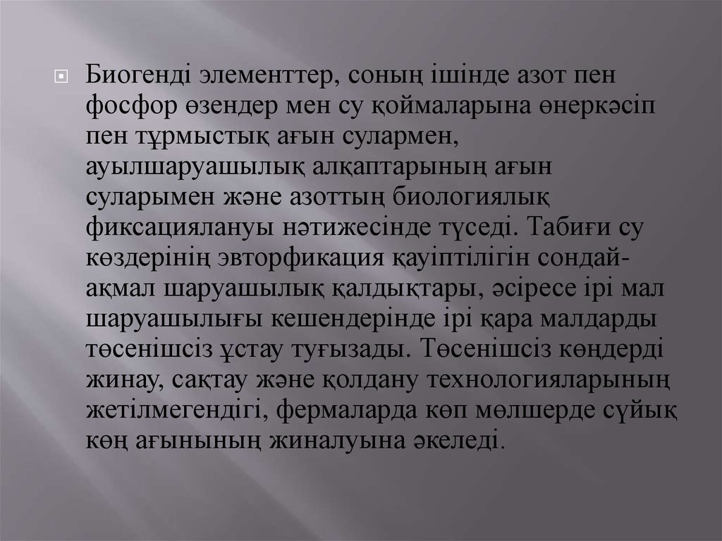 Биогенді элементтер, соның ішінде азот пенфосфор өзендер мен су қоймаларына өнеркәсіп