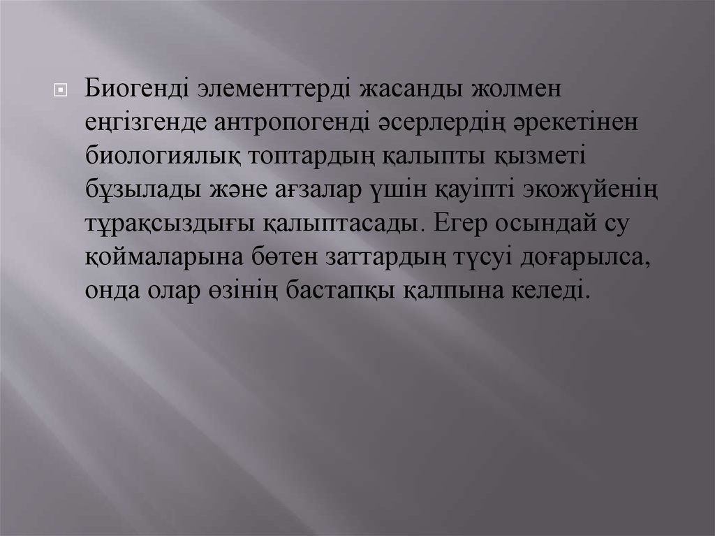 Биогенді элементтерді жасанды жолменеңгізгенде антропогенді әсерлердің әрекетінен