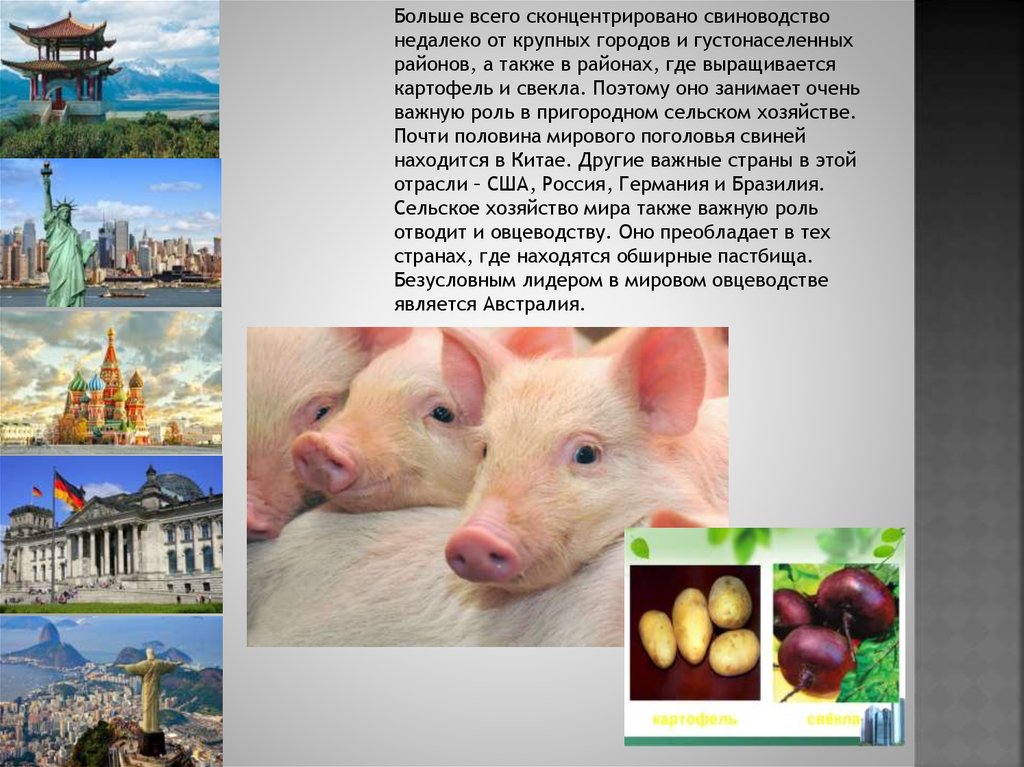 Больше всего сконцентрировано свиноводствонедалеко от крупных городов и густонаселенных