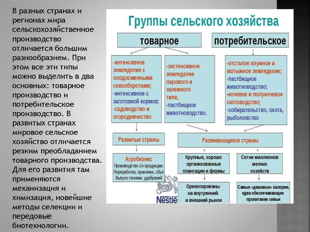 Кроме того, в наше время сельское хозяйство мира служит прочной
