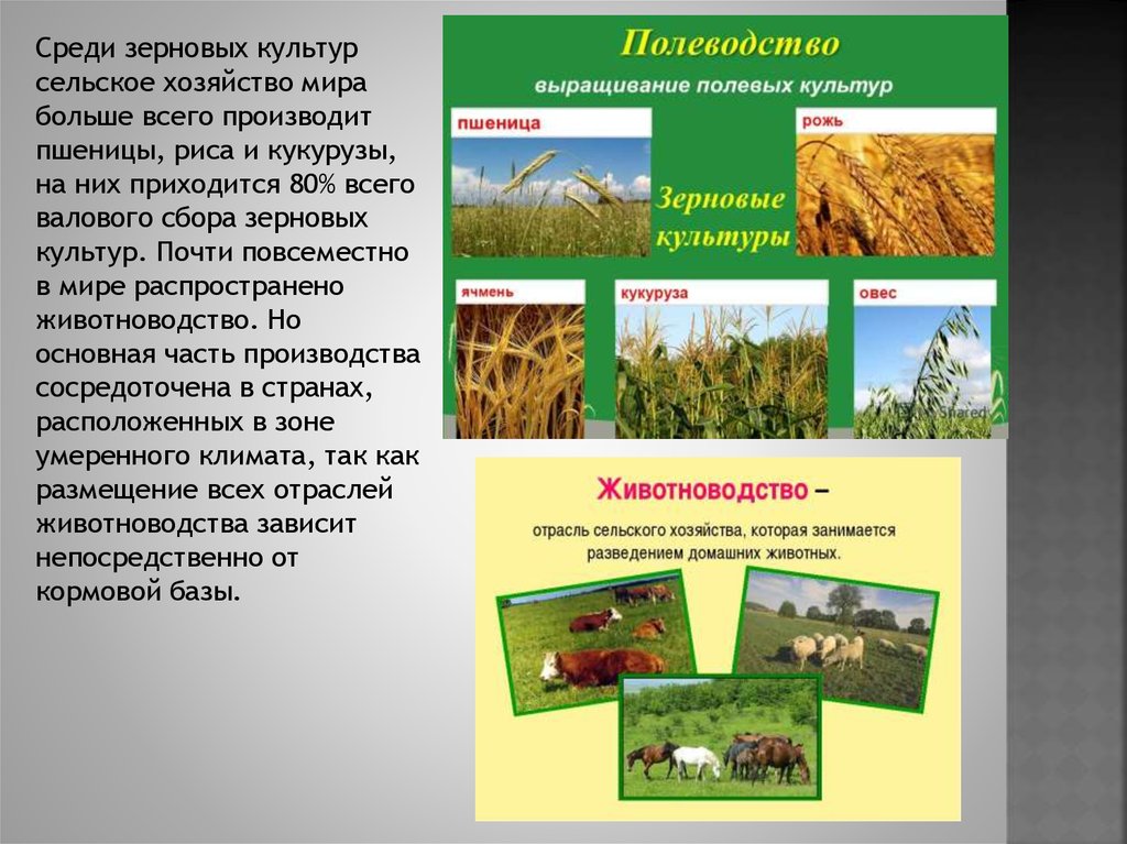 Практически во всех природных зонах мира развито растениеводство. Его неттолько там, где не позволяют природные условия: высокогорье, арктические