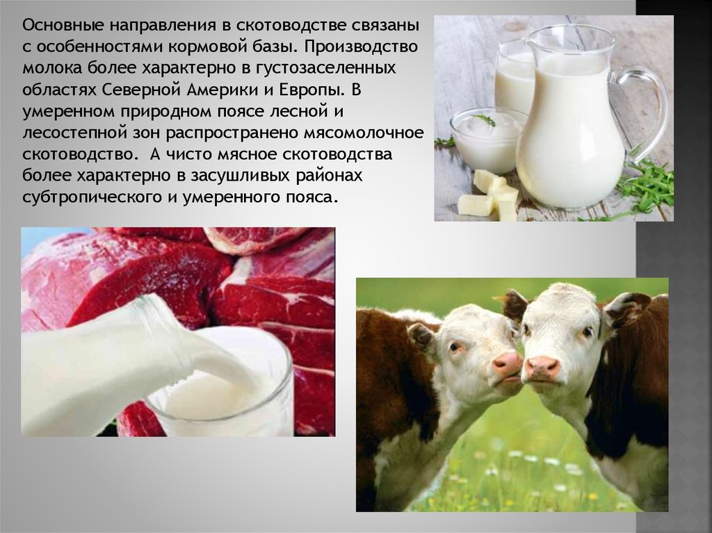 Основные направления в скотоводстве связаныс особенностями кормовой базы. Производство