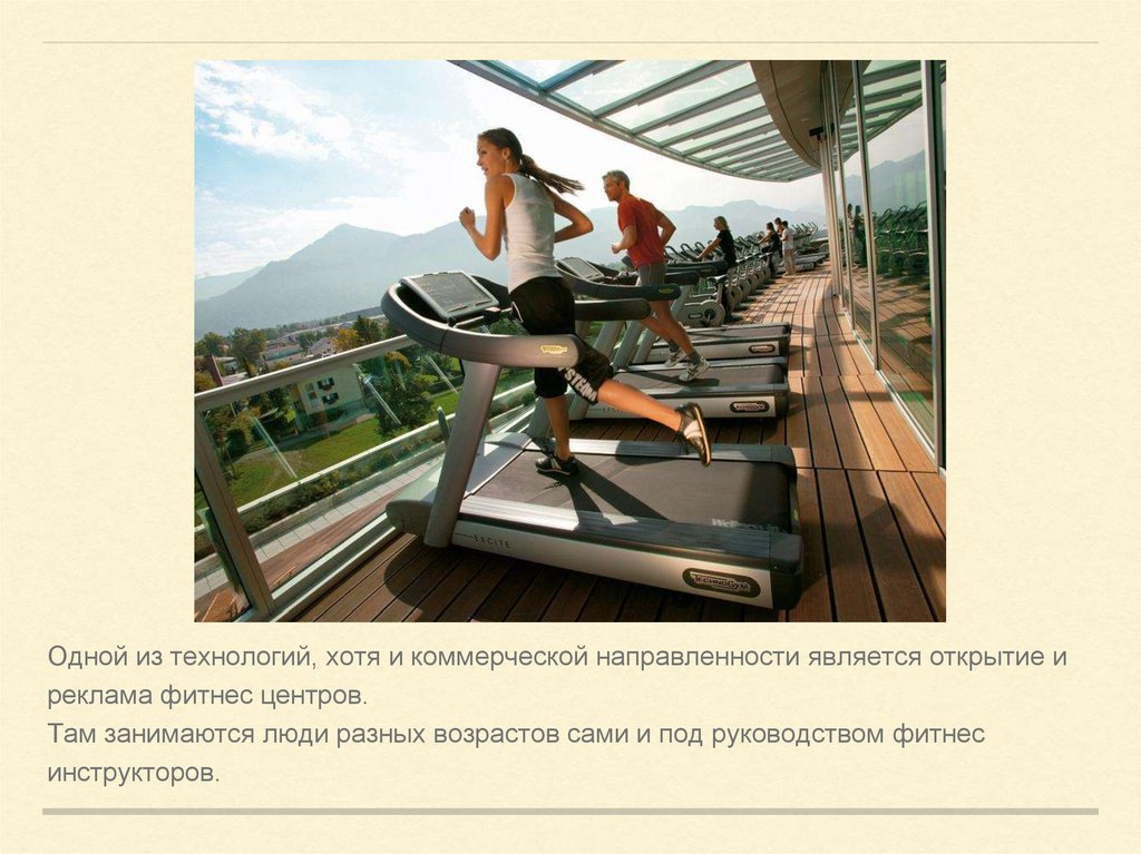 Одной из технологий, хотя и коммерческой направленности является открытие иреклама фитнес центров.