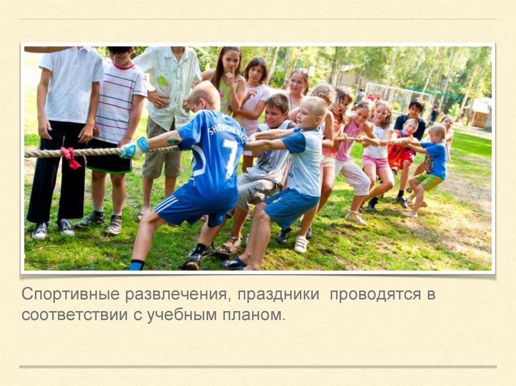 Спортивные развлечения, праздники проводятся всоответствии с учебным планом.